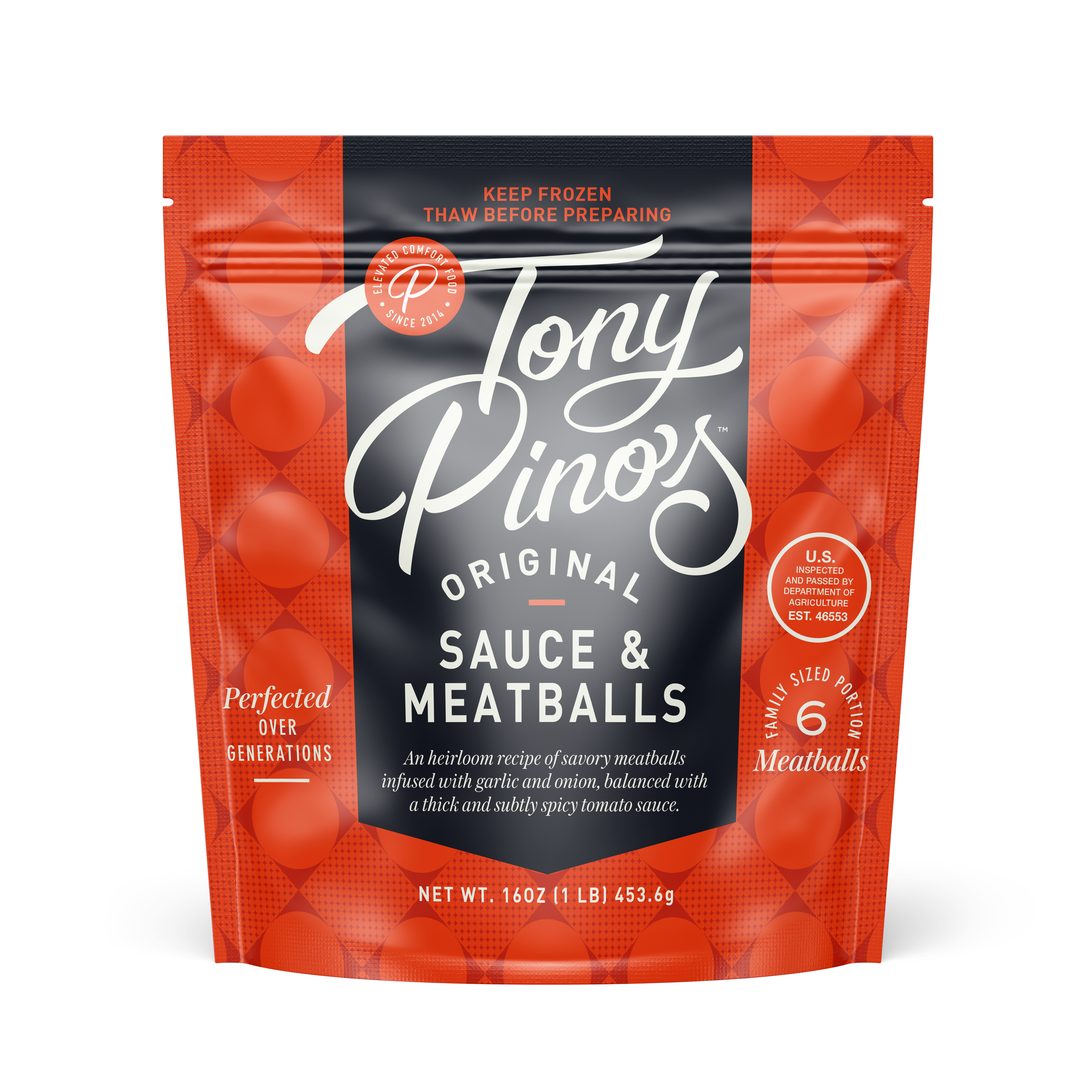 I started with the best of my family’s recipes for Sunday sauce in the classic, Italian-American style and shaped it to please the modern but nostalgic palette. We think you’ll love the beef and pork meatballs with herbs, onion, and garlic in an aromatic and subtly spicy Pomodoro sauce. Add to your favorite pasta.